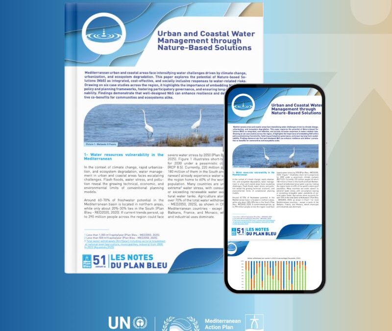 Mediterranean urban and coastal areas are facing increasingly complex water challenges, exacerbated by climate change, growing urbanization, and ecosystem degradation. In response to these pressures, Plan Bleu has released a new policy brief examining the potential of Nature-based Solutions (NbS) as integrated, sustainable, and socially inclusive approaches to managing water-related risks.